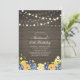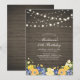 Celebrate a special day with this rustic wood + floral birthday invitation. This design features stylish string lights and flower bouquet on a dark wood texture background. You can customise the text and fonts as you want. More matching invitations and party supplies are available at my shop BaraBomDesign.