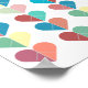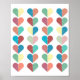 Sweet string of hearts design art poster in dusty pinks, reds reds, blues and yellows.