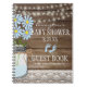 Let your baby shower guests write something special to the mum -to-be. This adorable baby shower guestbook shows an image of barn wood with a string of lights, mason jar filled with blue daisies and blue baby footprints. An image of lace borders the bottom. Guest book is personalised with mommys name and shower date. Customise all font, text and colours. To see more fabulous products, please visit "The Hungarican Princess - A Boutique" @ zazzle.com/hungaricanprincess. Congratulations.