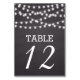 String of lights on chalkboard summer wedding table number featuring white twinkle glowing string of lights on the top on chalkboard. This modern and trendy wedding design is part of a wedding set or collection, is fully customisable and is perfect for an outdoor summer night rustic wedding.