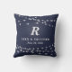 Your favourite bride and groom will love this customisable pillow featuring their wedding day or anniversary! Strings of white lights surround a monogram, couple's names and wedding date or other special occasion. You can change the navy background colour by clicking the Customise button. Makes a beautiful, modern, personalised gift for newlyweds.