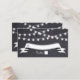 String of lights and vintage banner on chalkboard summer wedding seating place card featuring white twinkle glowing string of lights on the top and a vintage white banner with black outline on chalkboard or blackboard background. This modern and trendy wedding design with vintage elements is part of a wedding set or collection, is fully customisable and is perfect for an outdoor summer night rustic wedding.