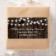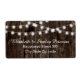 String of lights on old wood summer wedding label featuring white twinkle glowing string of lights on the top on old brown wood background. This modern and trendy wooden wedding design is part of a wedding set or collection, is fully customisable and is perfect for an outdoor summer night barn western rustic wedding. Note that there is not real wood just printed images.