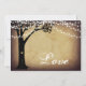 String of Lights Rustic Country Wedding Invitations, silhouette of an oak tree with heart leaves and a carved heart in the trunk. The invite has strings of lights hanging in the trees. The background is a distressed parchment paper design. Just add your own wedding invitation wording to this template to make your own custom rustic country wedding invites in a southern style. These are great for country weddings and outdoor evening receptions.
