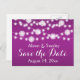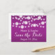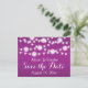 String of lights and white snowflakes purple winter wedding Save the Date postcard featuring white twinkle glowing string of lights with white snowflakes on the top on purple gradient background. This modern and trendy wedding design is part of a wedding set or collection, is fully customisable and is perfect for a winter Christmas wedding. Some elements courtesy of vectorportal.com.