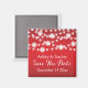 String of lights and white snowflakes red winter wedding Save the Date magnet featuring white twinkle glowing string of lights with white snowflakes on the top on red gradient background. This modern and trendy wedding design is part of a wedding set or collection, is fully customisable and is perfect for a winter Christmas wedding. Some elements courtesy of vectorportal.com.