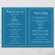 String of lights and white snowflakes blue winter wedding ceremony and party folded program featuring white twinkle glowing string of lights with white snowflakes on the top on blue gradient background. This modern and trendy wedding design is part of a wedding set or collection, is fully customisable and is perfect for a winter Christmas wedding. You will have to fold it in the centre. Choose only this type of paper-value as it folds well. Some elements courtesy of vectorportal.com.