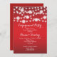 String of lights and white snowflakes red winter wedding engagement party invitation featuring white twinkle glowing string of lights with white snowflakes on the top on red gradient background. This modern and trendy wedding design is part of a wedding set or collection, is fully customisable and is perfect for a winter Christmas wedding. Some elements courtesy of vectorportal.com.