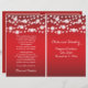 String of lights and white snowflakes red winter wedding ceremony and party folded program featuring white twinkle glowing string of lights with white snowflakes on the top on red gradient background. This modern and trendy wedding design is part of a wedding set or collection, is fully customisable and is perfect for a winter Christmas wedding. You will have to fold it in the centre. Choose only this type of paper-value as it folds well. Some elements courtesy of vectorportal.com.