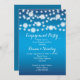 String of lights and white snowflakes blue winter wedding engagement party invitation featuring white twinkle glowing string of lights with white snowflakes on the top on blue gradient background. This modern and trendy wedding design is part of a wedding set or collection, is fully customisable and is perfect for a winter Christmas wedding. Some elements courtesy of vectorportal.com.