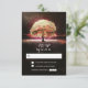 pink coral rustic wedding RSVP card with old oak tree and string lights.