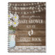 Let your baby shower guests write something special to the mum -to-be. This adorable rustic country baby shower guestbook shows an image of barn wood with a string of lights, mason jar filled with white daisies and baby footprints. An image of lace borders the bottom. Guest book is personalised with mommys name and shower date. Customise all font, text and colours. Perfect for a bridal shower as well. To see more fabulous products, please visit "The Hungarican Princess - A Boutique" @ zazzle.com/hungaricanprincess. Congratulations.
