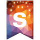 string of party lights on triangle abstract bunting