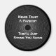 A slogan fridge magnet. Never Trust A Physicist, They'll Just String You Along - printed in white over a black hole made of string. Perfect for a physicist, physics student or teacher.