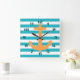 Stripe and Anchor Pattern Nautical Square Wall Clock