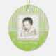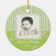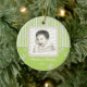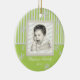 Spring Green stripes and snowflakes photo ornament. Add any photo and change text. Great for newlyweds, new babys, family photos and more.