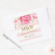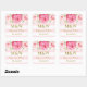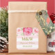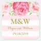 Wedding monogram favour tag stickers in light pastel pink blush and white stripes pattern with pink watercolor flowers and gold colour text. A great way to decorate wedding favours.