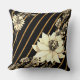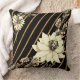 Striped Black Gold with White Rose Pillow A New York Moment. The title says it all, this pillow just shouts loud, bold, dramatic flare, and metropolitan act with the backdrop of gold stripes. This is a fantastic addition to the formal décor, dramatic loft, upscale tv viewing room, of course bedroom, or the ultra elegant granny flat.