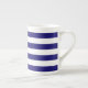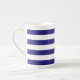 Collect a set of contemporary designed bone china coffee mugs to use for yourself or give as a gift. Mix and match styles and colours for an eclectic feel. Coffee mugs makes a nice housewarming gift or wedding gift. Royal blue and white stripes.