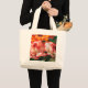 Botanical themed warm colored bag featuring a photo of colorful bunch of flowers: orange gerbera and striped white red carnations symbolizing devotion, love and fascination. Boho style glamorous optimistic design. Stylish gift for any special occasion (Saint Valentine's Day, Mother's day, Grandparents Day, birthday), vibrant accent to your outfit. You can delete the text "Amor vincit omnia" (Love conquers all) or replace it with your own message (click "Personalize this template").