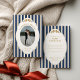 This double-sided Christmas card showcases a striking striped pattern accented by a modern baroque frame, a simple bow, and an oval photo. The combination of a sleek modern font and a graceful script adds a touch of sophistication, giving the card a stylish, statement-making look. Easily customize it by clicking "Personalize this design".