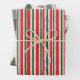 Wrap your gifts in festive charm with this striped Christmas wrapping paper featuring red, green, yellow, and cream lines paired with a classic Christmas tree decorated with vintage elements. Perfect for holiday gifting!