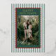 A festive holiday photo card featuring a traditional striped border paired with a bold scalloped frame for a timeless, vintage-inspired look. The rich green center panel showcases your favorite family photo beneath a warm “Happy Holidays” greeting, while the deep red accents add a cozy, classic touch. Personalized text at the bottom completes the refined design. The back offers space for four additional photos, giving you plenty of room to share more joyful memories from your holiday season.