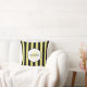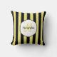 Say hello to summer with this square throw pillow in a trendy black and yellow-green vertical stripes pattern like that of a cucumber beetle. Personalise by adding your name and monogrammed initial. This is part of the Summer Bug Patterns Series designed by the Oh so Girly Boutique.