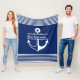 Striped Custom Boat Name anchor Navy Blue Fleece Blanket