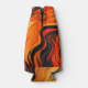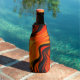 This bottle cooler has a striped design on it.