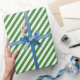 Striped Diagonal Holiday Simple Green White Wrapping Paper