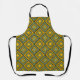 This apron has an art deco design of diamond shapes with diagonal lines and colored diamonds in shades of green and yellow.