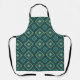 This apron has an art deco design of diamond shapes with diagonal lines and coloured diamonds in two shades of teal.