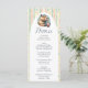 This pastel baby shower menu card features a funny capybara drinking bubble tea with colourful dotted stripes in soft tones. The playful design makes it a perfect personalised table detail.