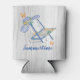 Here's a design that works well indoors and out. The Summer theme features a lounge chair with a blue and white striped hat and bright yellow butterflies. In the background there's grey panelling.