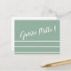 Grazie Mille! Italian Thank you postcard with pretty white typography and white stripes on a muted tone background in your choice of lovely colours.