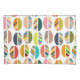 This pillowcase has a mid-century modern design of oval halves, some solid and some striped, on a field of white.