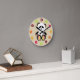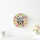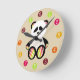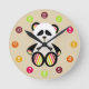 A clock featuring an illustration of a panda bear with striped paws and ears.