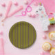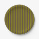 Striped pattern in chocolate brown and olive green paper plate