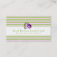 This standard business card front features pastel lilac and green stripes with a purple watercolor rose. It is designed as a small business loyalty punch card. The punch circles match the stripe colours on the back with a message of gratitude. Fill in the template fields with your information for the front and back, REMOVE any text or click customise to select a typeface style, size, and colour you prefer.