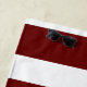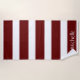 Personalised beach towel with a horizontal red burgundy and white striped pattern design. With white customisable lettering, you can add your own name. Great for adding a personal touch to your trips to the ocean or favourite lake.