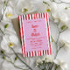 This wedding invitation brings playful energy in a classic, elegant format. Hand-painted red stripes frame a soft blush center, creating a vibrant yet romantic backdrop that feels both modern and welcoming. Expressive brush lettering adds an artistic, personal touch, while the vertical layout gives the design room to breathe and shine. Perfect for couples who love bold color with a refined twist, this invitation sets the stage for a celebration filled with joy, style, and heartfelt moments.