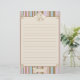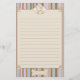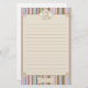 Very trendy Poodle stationery is brown, pink, and blue. The doggie silhouette is at the top, and a dog bone at the bottom. The four corners of the lined section are in place with paw prints. Cute dog lover stationery for all your letters!