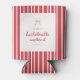 Striped Red & White Bow Script Bachelorette Can Cooler