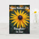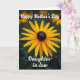 This card features a close-up of a golden-yellow flower filling most of the front, its petals fanning out in neat symmetry like an open embrace ❤️. The petal edges show fine ridges and gentle curves, drawing your eye toward a plush, textured center that fades from deep brown into a dusky blue tone. Behind it, the setting falls into a soft green blur with hints of other blooms, giving the main flower a tender, intimate spotlight. The overall lighting feels like warm daylight, adding a calm, affectionate mood as if the flower is leaning in to greet someone dear. Near the top, white cursive-style lettering sits lightly over the petals with a short celebratory line, and a second word of endearment appears lower down, also in white. The text is easy to spot against the rich yellows and greens, and it adds a gentle, friendly closeness without crowding the image 🌼. In the background, the greens melt into smooth shapes with faint floral silhouettes surrounding the sharp, sunlit blossom.
