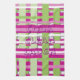 Personalize this tea towel in bright pinks and green striped 3d design