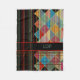 Fleece blanket with my original modern design of stripes over multicolored triangle shapes on black with sample initials for you to customise with your own.