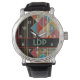 A watch with my original design of stripes over multicolored triangles and sample initials for you to customise with your own.