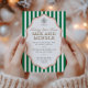 Elevate your company's holiday celebrations with the festive "Holiday Open House Mix and Mingle" invitation. This eye-catching design features a vibrant green and white striped pattern that creates an energetic, modern backdrop for your event details. The invitation is framed by a stylish wavy pink and gold border, adding a touch of trendy flair to the overall aesthetic.