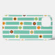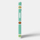 This phone case has a 1970s retro design of blue stripes interrupted by circles in brown, orange and green.